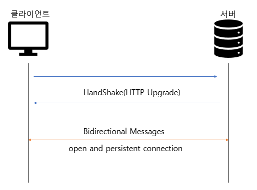 하지만 웹소켓은 양방향 통신으로 연결이 이루어지면 클라이언트가 요청하지 않아도 데이터가 저절로 서버로부터 올 수 있다. HTTP처럼 별도의 요청을 보내지 않아도 데이터를 수신할 수 있다는 것이다.